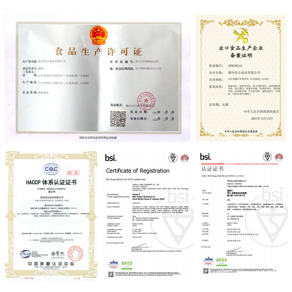 公司擁有各種進出口資質、HACCP認證、BRCGS認證等各種國內外的專業認證,